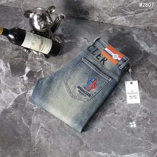 몽클레어 백 로고 플레이 자수 로고 데님 팬츠 중청 남성용(1컬러)